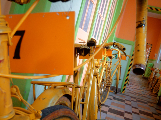 une trentaine de vélos et du film plastique